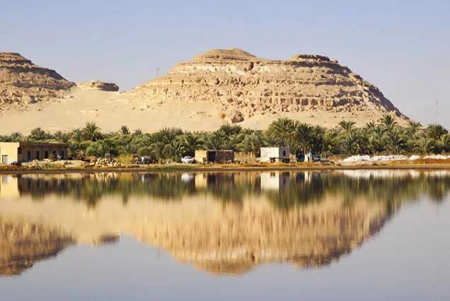 Start Ihres Ägypten Abenteuer um 6 Uhr morgens. Fahrt zur Oase Baharîya, geführter Spaziergang durch Palmenhaine und Entspannung in heißen Quellen.