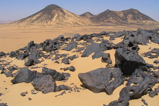 Traslado desde El Cairo al Oasis de Bahariya. Almuerzo local y expedición en 4x4 al Desierto Negro, Montaña de Cristal y Valle de Agabat. Cena y noche de campamento en el Parque Nacional El Desierto Blanco Y Oasis Del Bahareya.